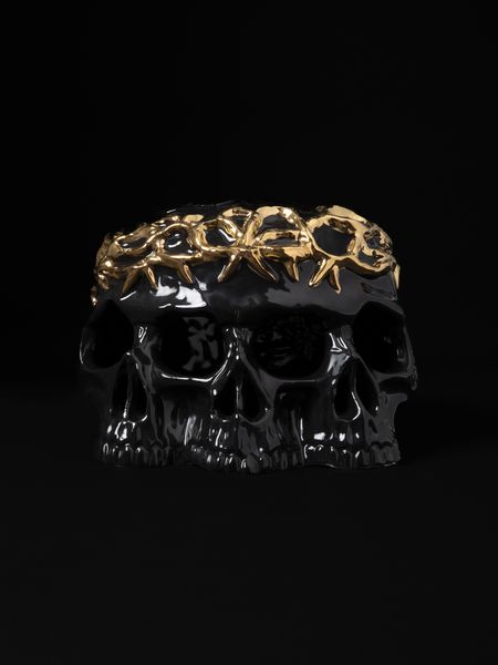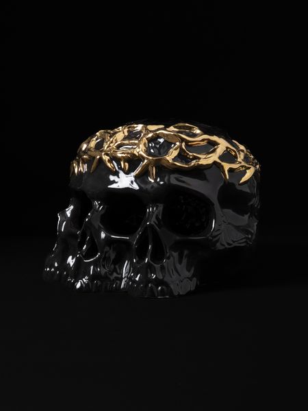 オリジナルのカルバリースカルモチーフをセラミックで製作 茨部分には金箔を使用