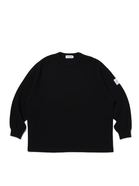 N/C混紡糸を度詰めで編み上げたオリジナルのワッフル生地を使用。 ・糸目がソリッドに立っており、ドライなタッチが特徴。 ・オーバーサイズシルエット。