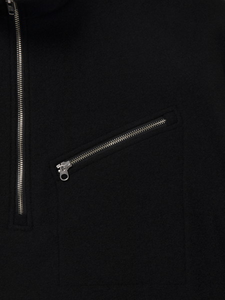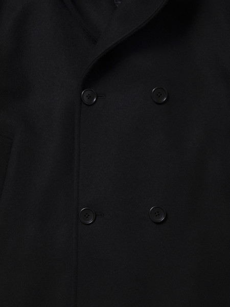 Super100sを使用し織り上げられたウールメルトンを使用。 ・毛羽が少なく上品な光沢感を持つ。 ・裏地には肌当たりのいいキュプラを使用。 ・ワイドシルエット。