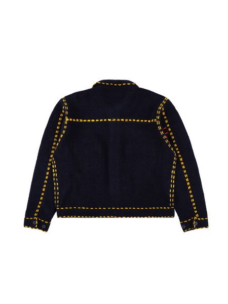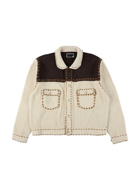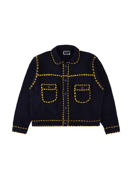 固いイメージのあるユーティリティアイテムを、文字通り柔らかい雰囲気で表現したユーモラスなカーディガンです。