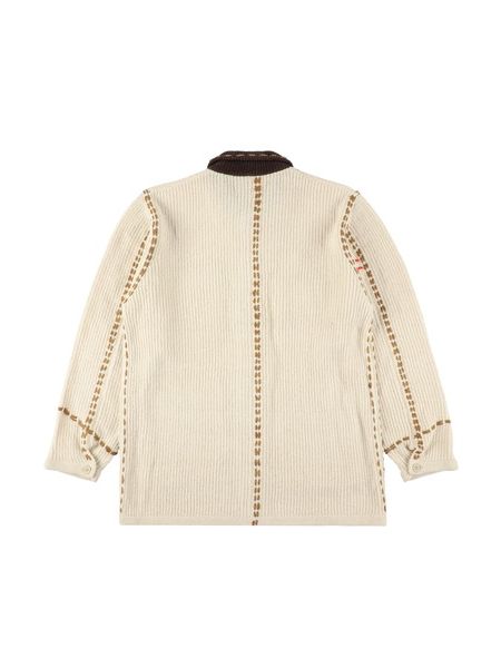 スクエアなイメージのあるユーティリティアイテムを、文字通り柔らかい雰囲気で表現したユーモラスなカーディガンです。