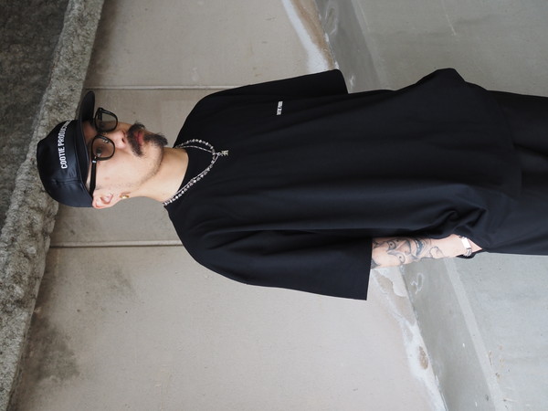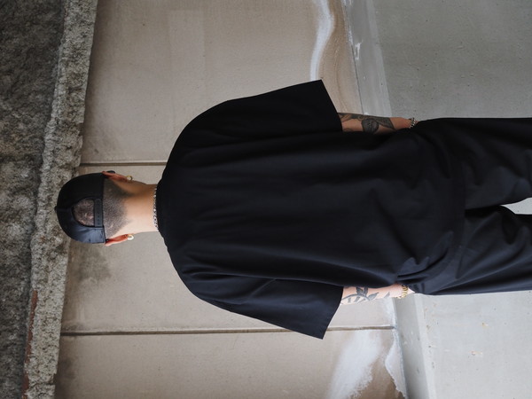 N/C混紡糸を度詰めで編み上げたオリジナル天竺を使用。 ・独特のタッチ、生地表情を持つ。 ・ワイドシルエット。