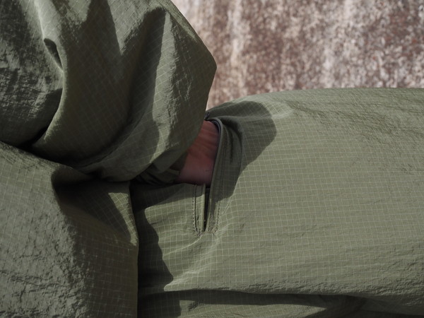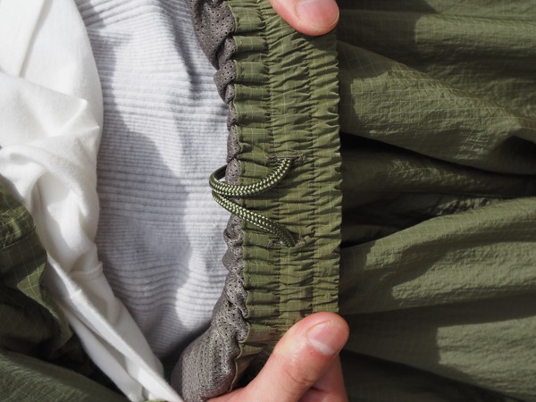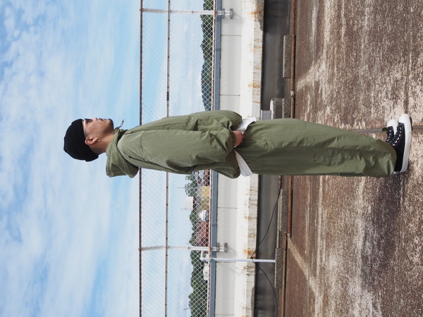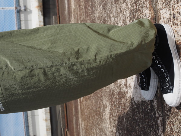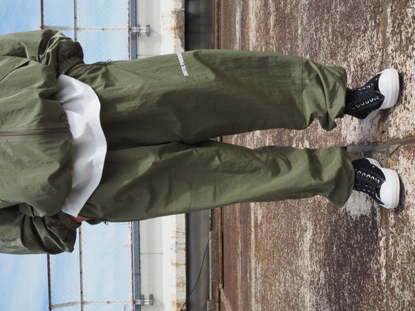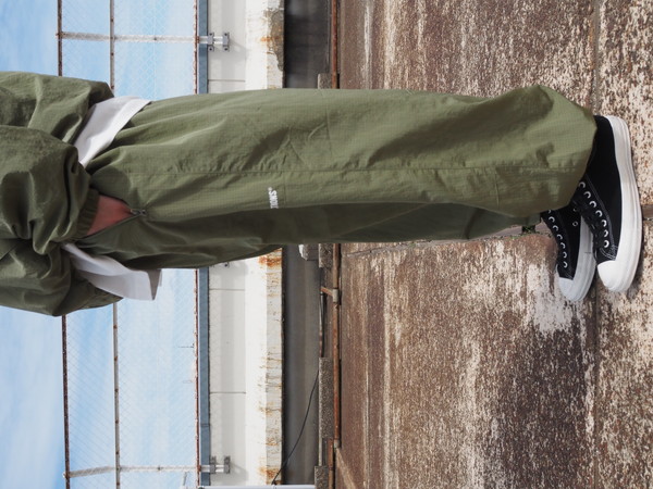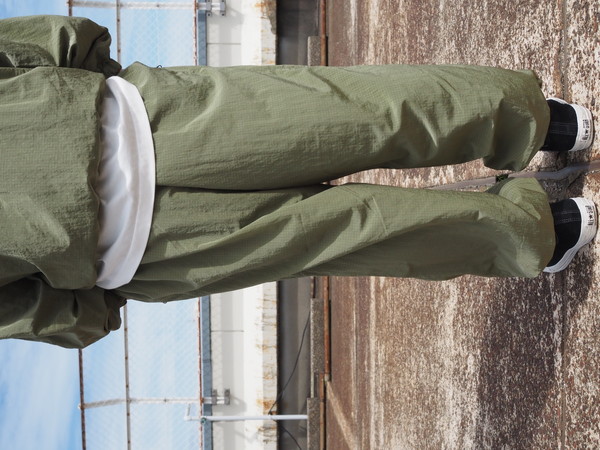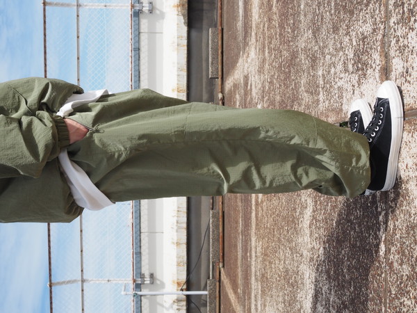 シワになりにくく、撥水性、透湿性を持つ ・総裏メッシュ仕様 ・ワイドシルエット ・ドローストリングのイージー仕様 ・裾口ゴム