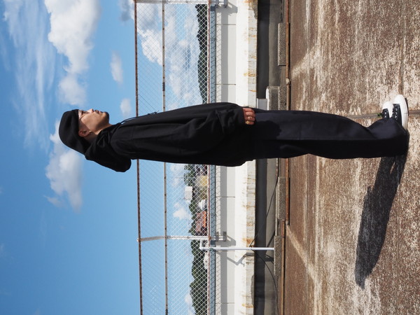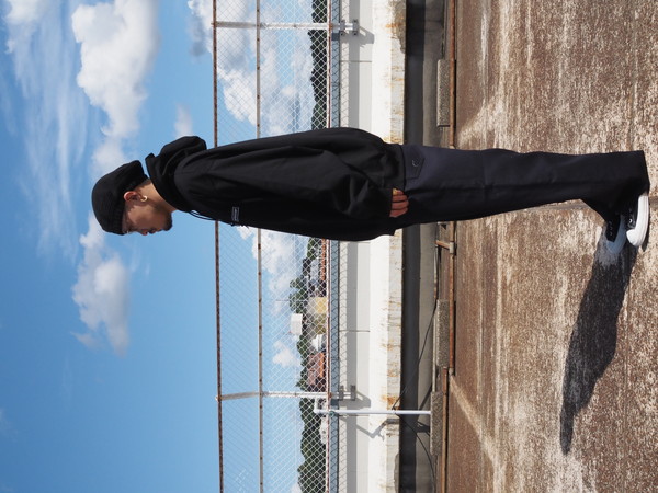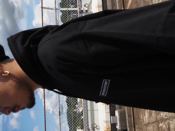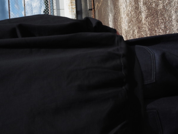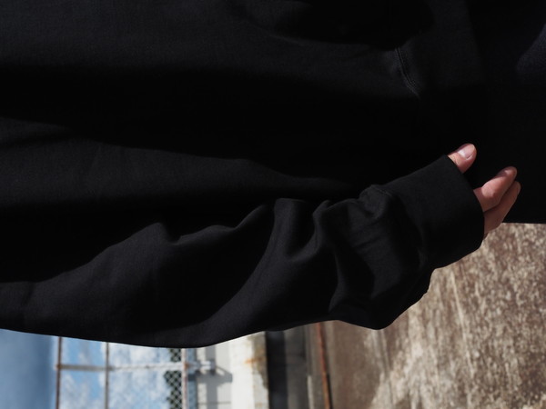 オリジナルで作成したヘビーオンス天竺を使用。 ・しっかりとした生地感で独特の光沢感を持つ。 ・ワイドシルエット。