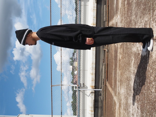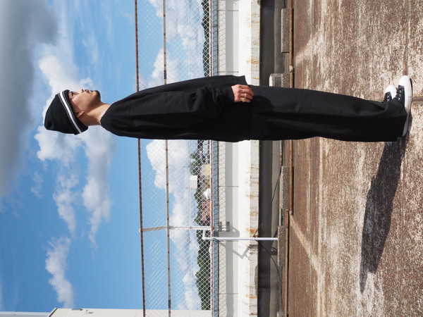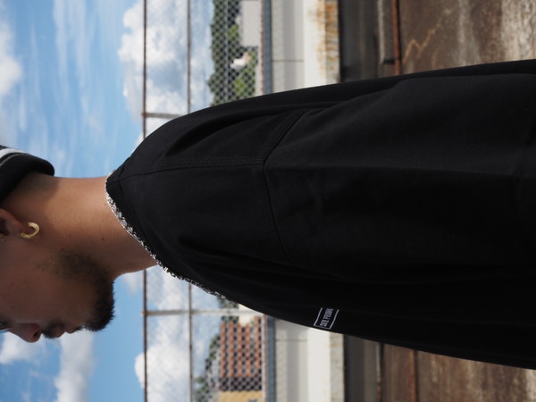 オリジナルで作成したヘビーオンス天竺を使用。 ・しっかりとした生地感で独特の光沢感を持つ。 ・ワイドシルエット。