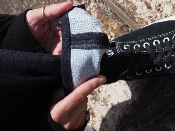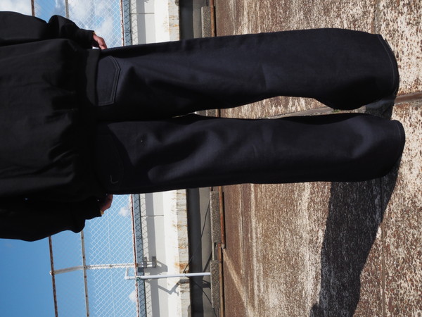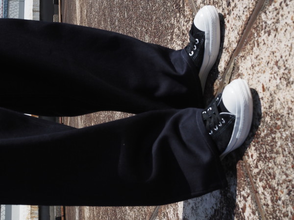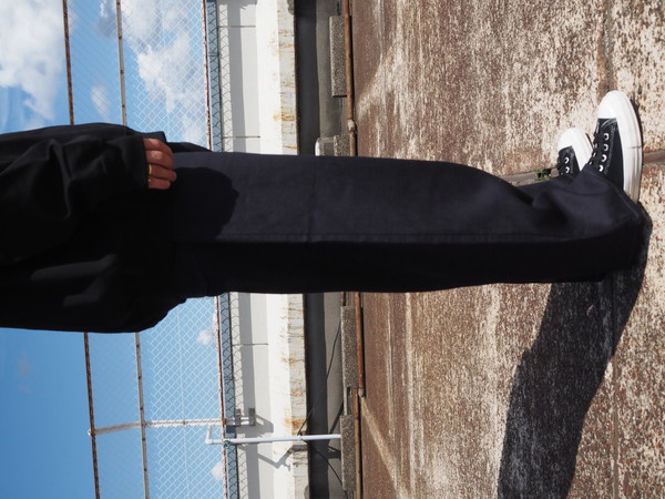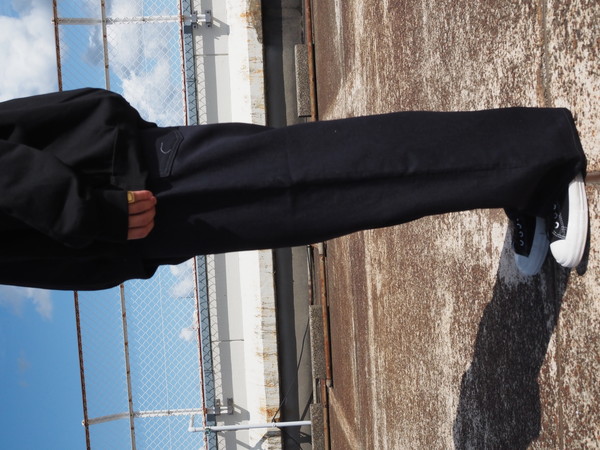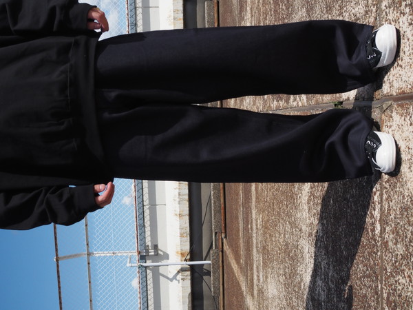 裏糸はループ調でふんわりとしたタッチを持つ。 ・バックゴムイージー仕様。前開き有り。 ・ワイドシルエット。