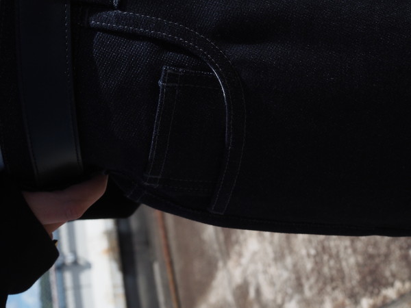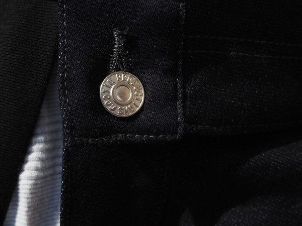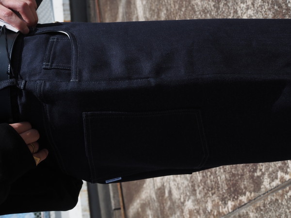 経糸、緯糸を通常のデニムの糸使いでドビー織機によって 織り上げたオリジナルファブリックをリジッドで使用。