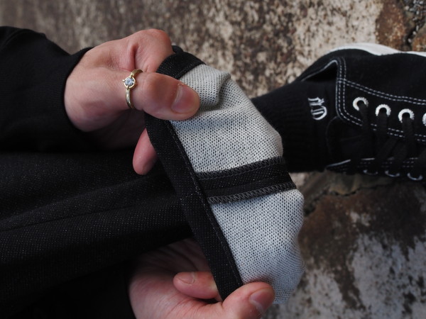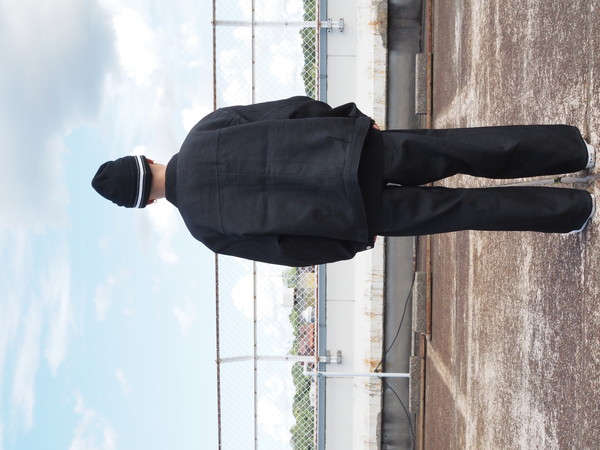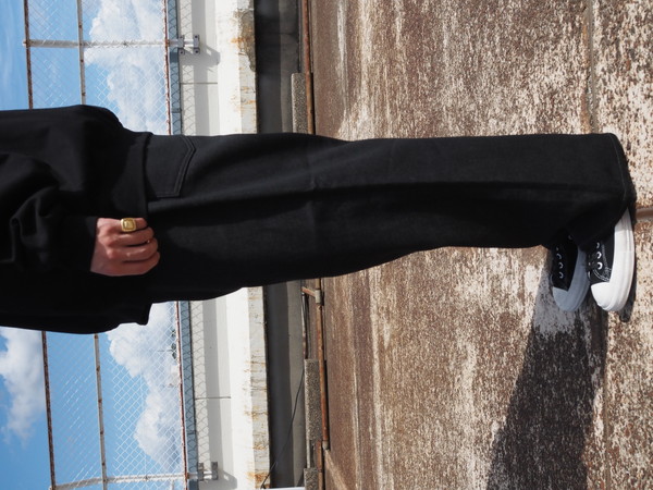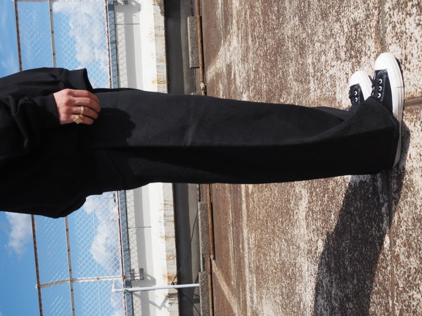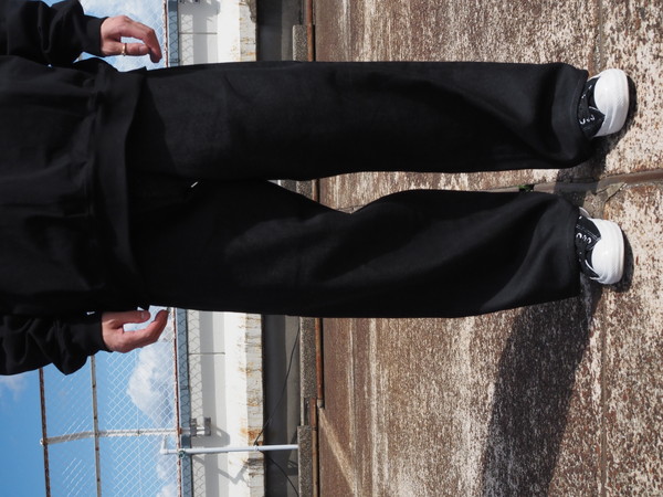 裏糸はループ調でふんわりとしたタッチを持つ。 ・バックゴムイージー仕様。前開き有り。 ・ワイドシルエット。