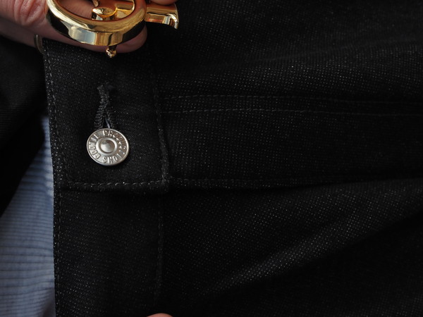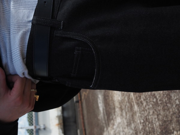 経糸、緯糸を通常のデニムの糸使いでドビー織機によって 織り上げたオリジナルファブリックをリジッドで使用。