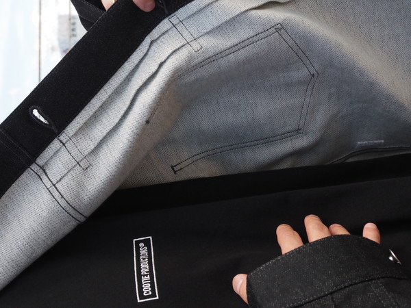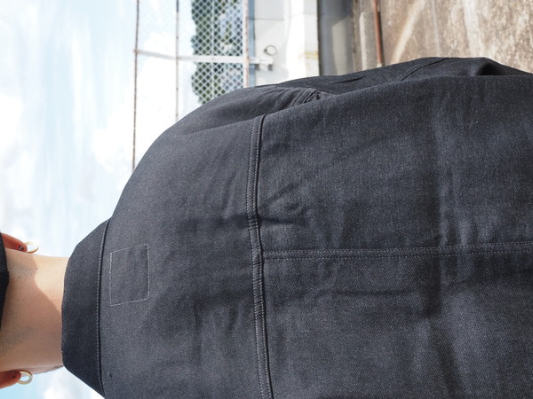 経糸、緯糸を通常のデニムの糸使いでドビー織機によって 織り上げたオリジナルファブリックをリジッドで使用。