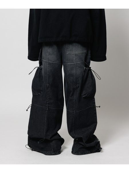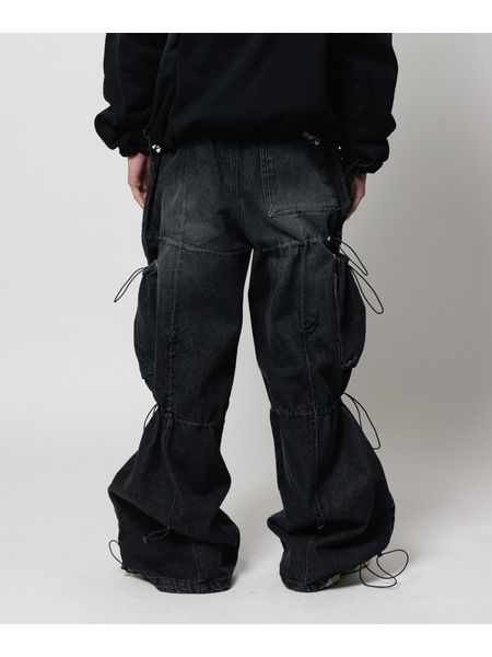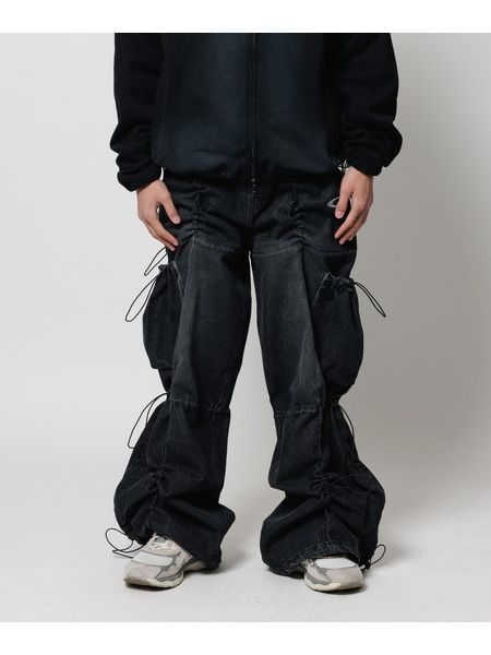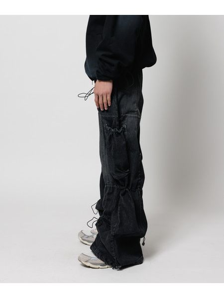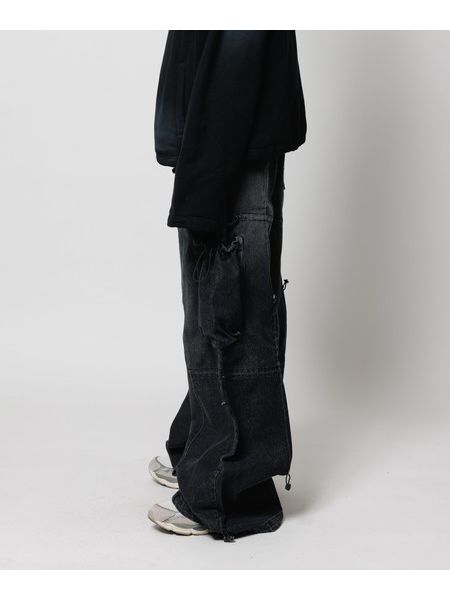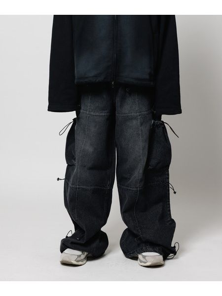 VINTAGEのようなブリーチ加工+オーバーダイ加工。 ・アジャスターでシルエット変更。