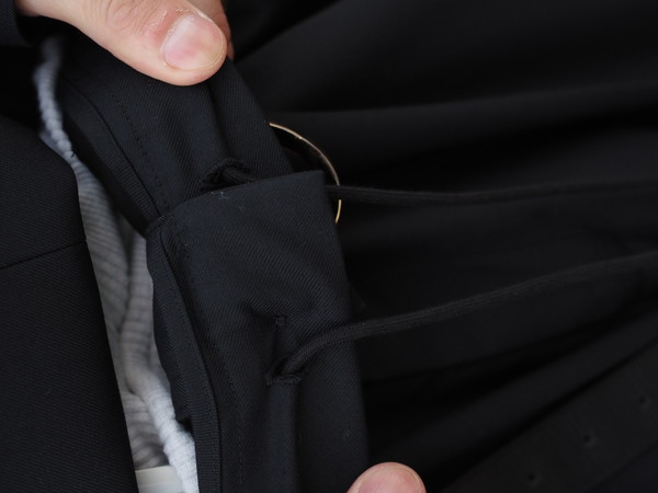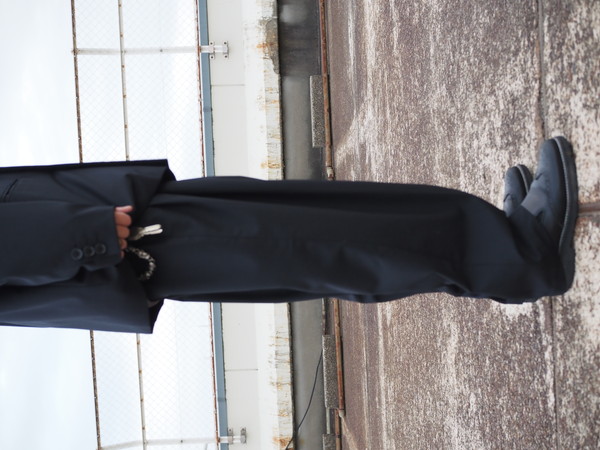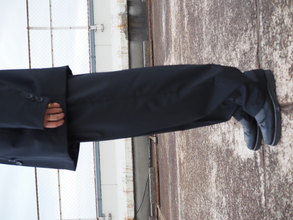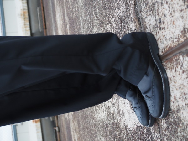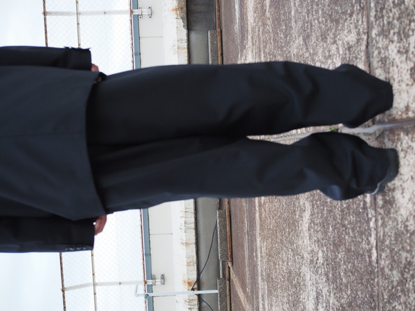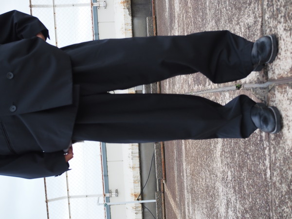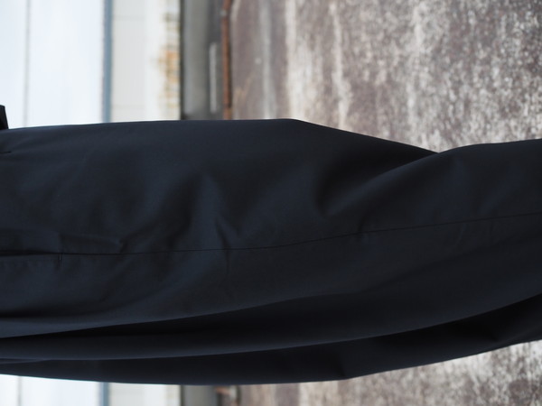 表地撥水加工。 ハンドウォッシャブル。 ドローストリングのバックゴムイージー仕様。前開き有り。 2タックのワイドテーパードシルエット。