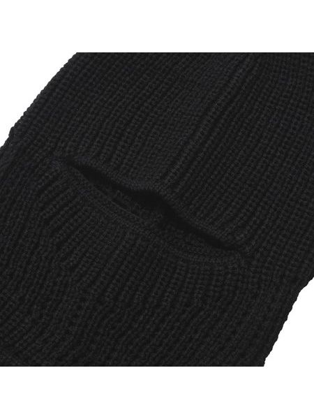 オリジナルで編み上げた2wayバラクラバ。 2つの違う編み地をデザインで落とし込み着用時に肌の色とのコントラストを楽しめる仕様。