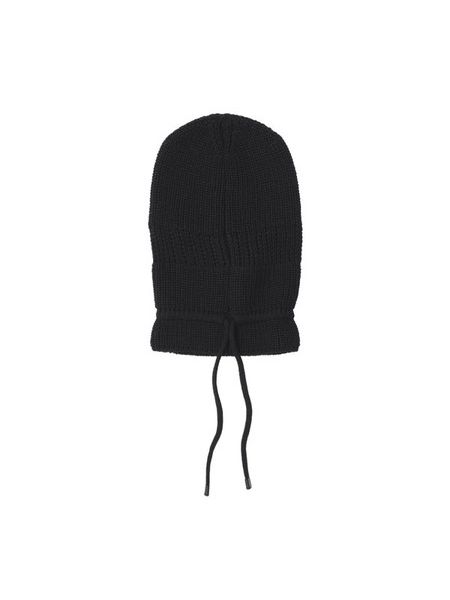 バラクラバには珍しいネック元にコードを配し着用時のネックの防寒性を高めている。