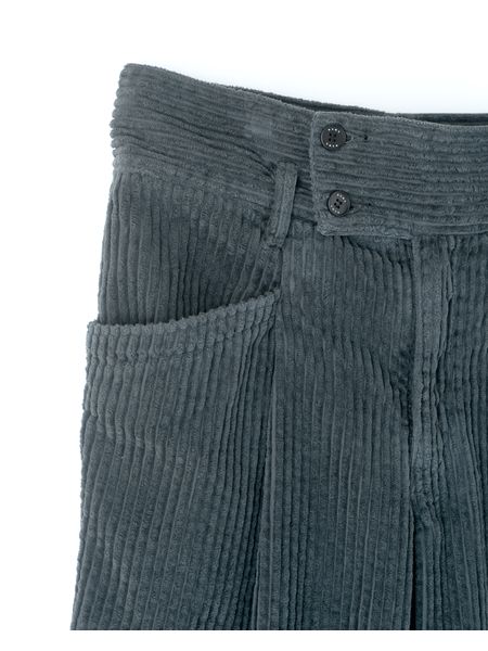 サイドシームを後方へ移動させポケット幅を延長。 太畝コーデュロイを使用。ストレートシルエット。
