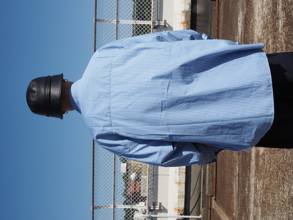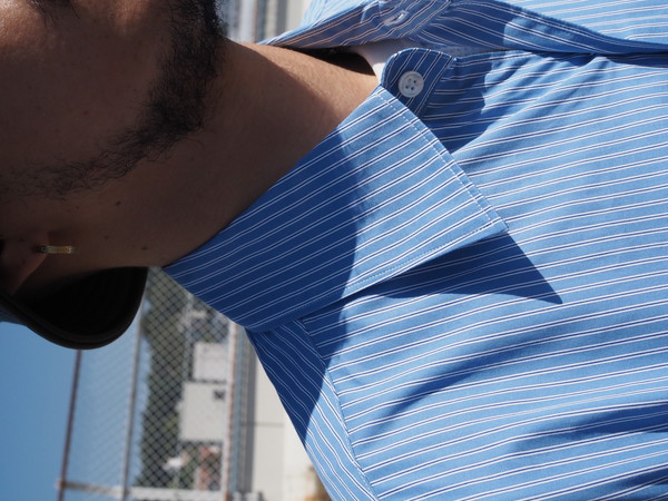 スビンコットンとギザコットンの混紡糸で織り上げられたストライプブロードを使用。