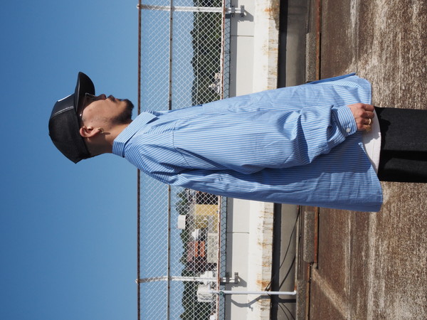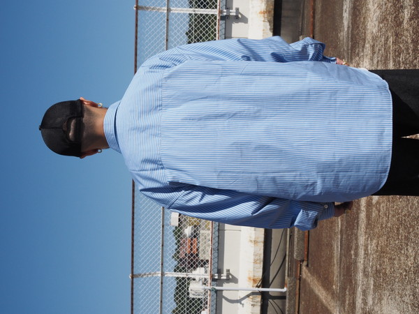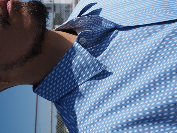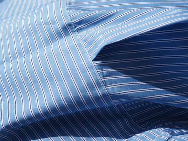 スビンコットンとギザコットンの混紡糸で織り上げられたストライプブロードを使用。