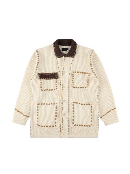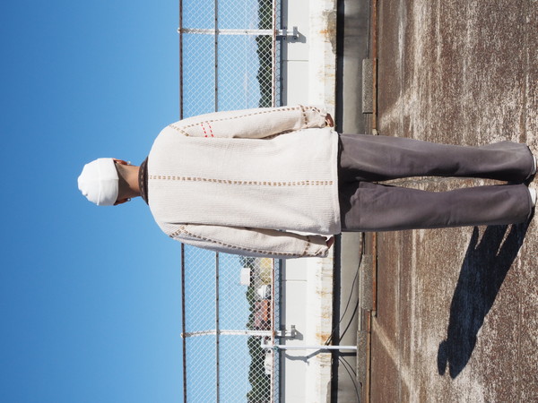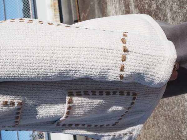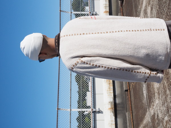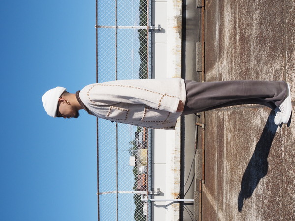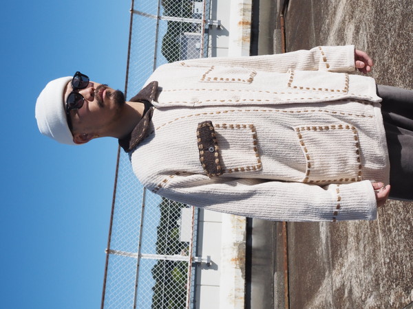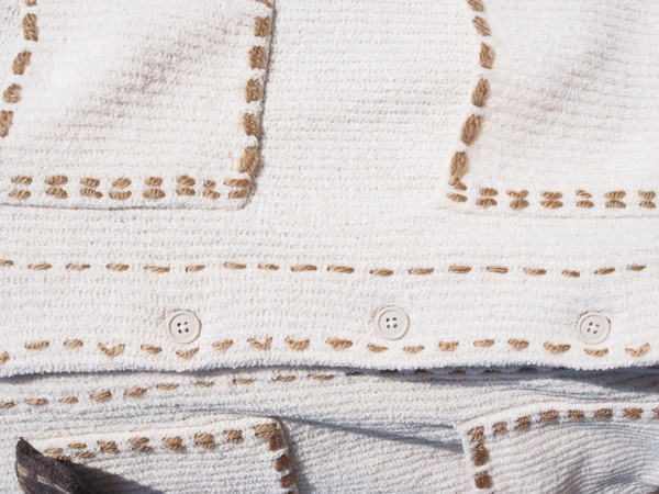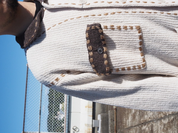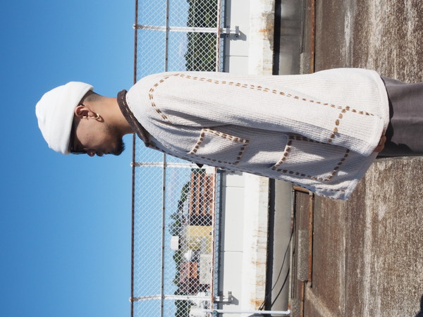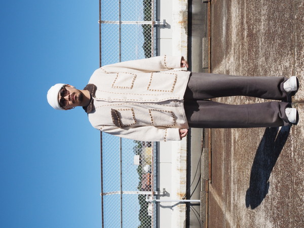 スクエアなイメージのあるユーティリティアイテムを、文字通り柔らかい雰囲気で表現したユーモラスなカーディガンです。