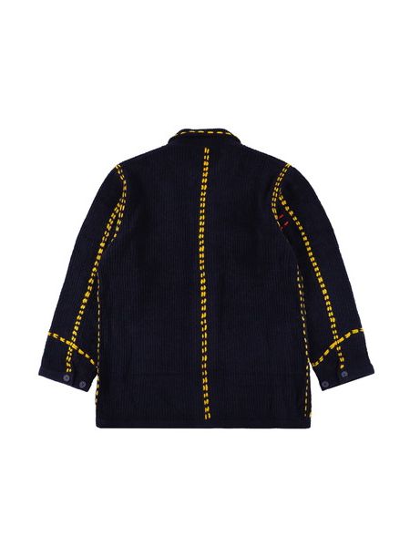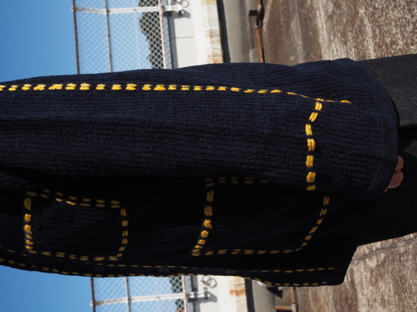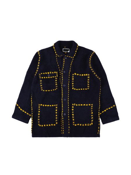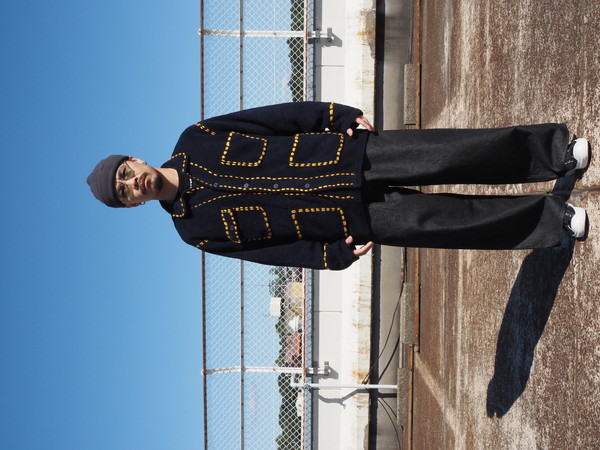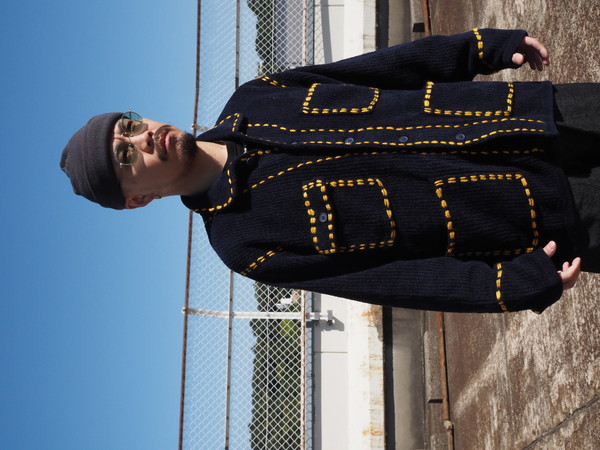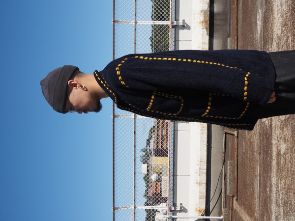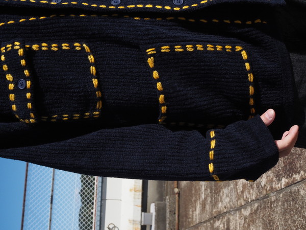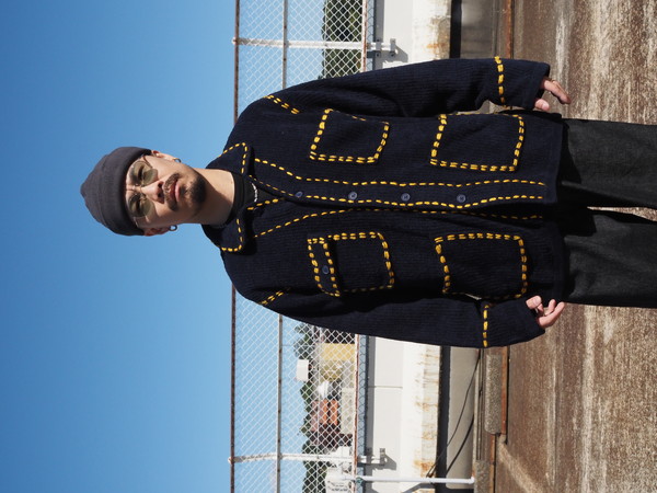 スクエアなイメージのあるユーティリティアイテムを、文字通り柔らかい雰囲気で表現したユーモラスなカーディガンです。