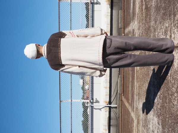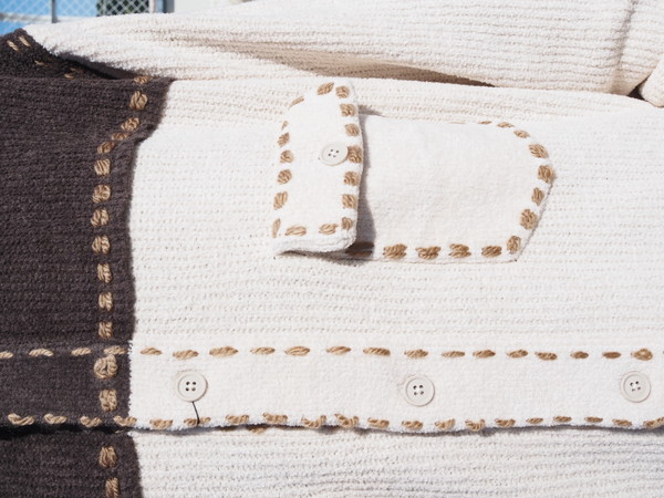 オーガニックコットンにリサイクルポリエステル混の軽く暖かみある素材感。