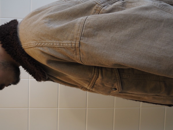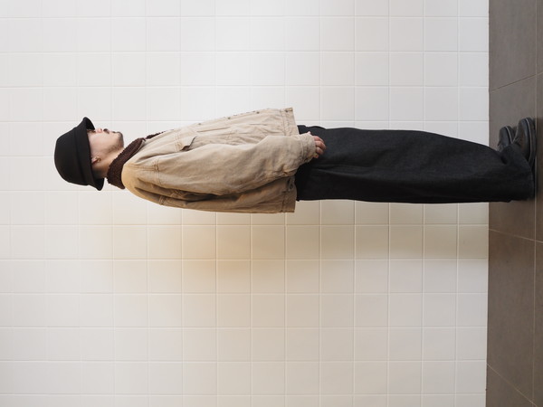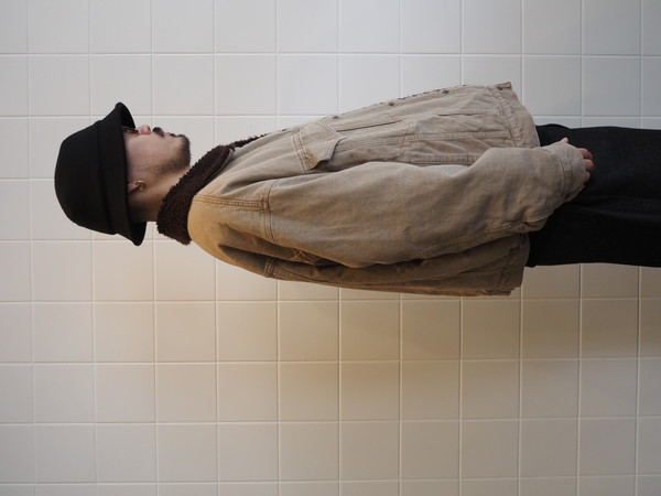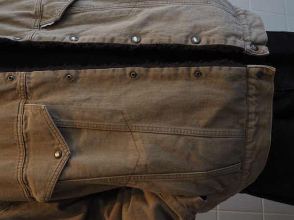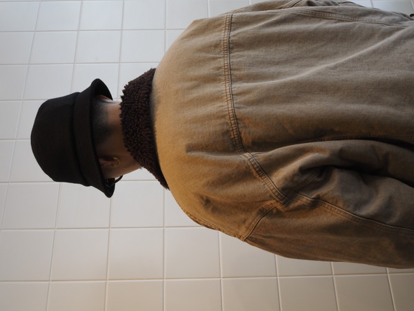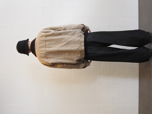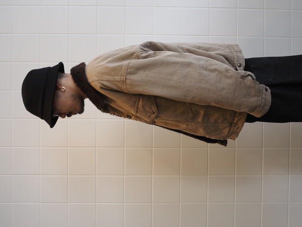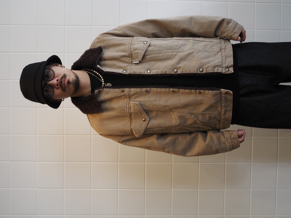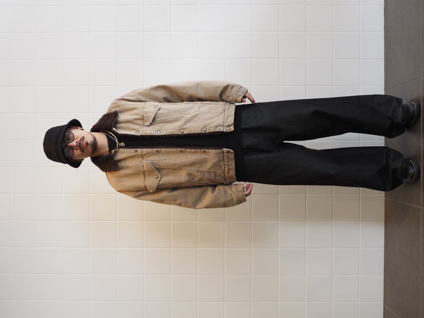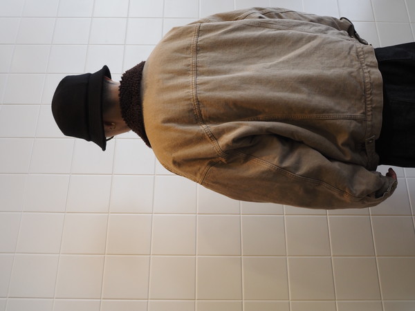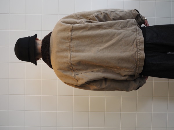 身頃裏にボア、袖裏には袖通しを考慮したキルトを使用。ワイドシルエット。製品 Wash 加工。