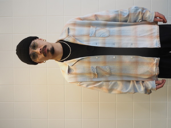 Name. / COTTON FLANNEL PLAID OPEN COLLAR SHIRT : DISTRESSED -Sax-