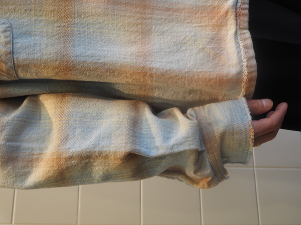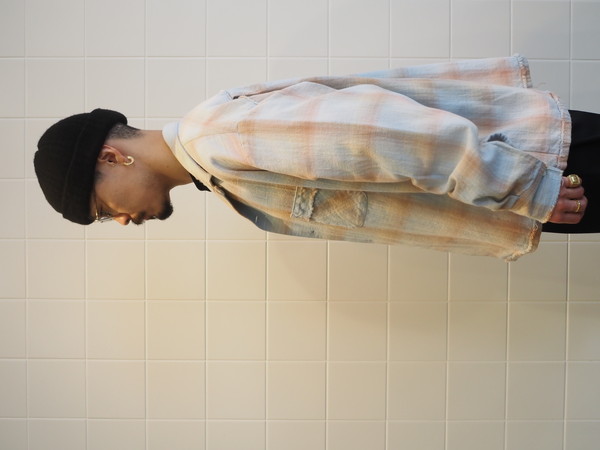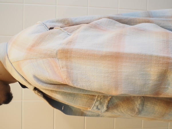 部分的にフェード加工とユーズド加工。 膨らみのあるツイルチェック。