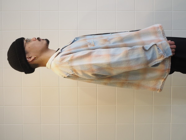 ¥ 39,600 (税込)Name. / COTTON FLANNEL PLAID OPEN COLLAR SHIRT : DISTRESSED -Sax-