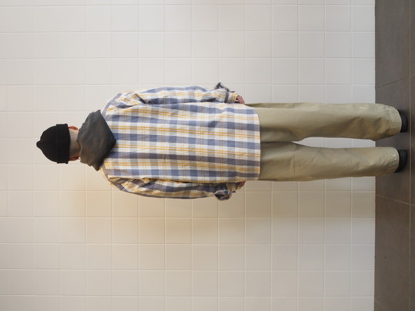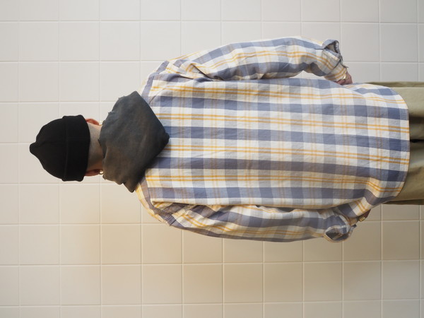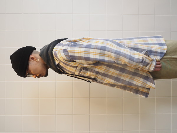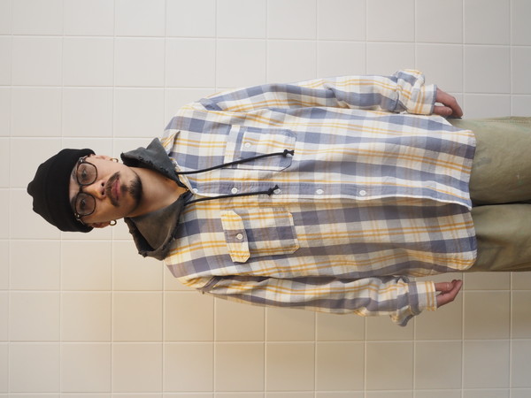 ヴィンテージを彷彿とさせるチェックネル生地を使用し、古い時代のワークシャツの空気感をそのまま落とし込んだ一着。起毛感や色の出方まで含め、当時の表情を意識して仕上げている。 最大の特徴は、40年代のワークシャツに見られるユニークな紙たばこ用ポケット。実用性から生まれたこのディティールが、時代背景とリアルな労働の匂いを強く感じさせるポイントになっている。