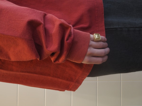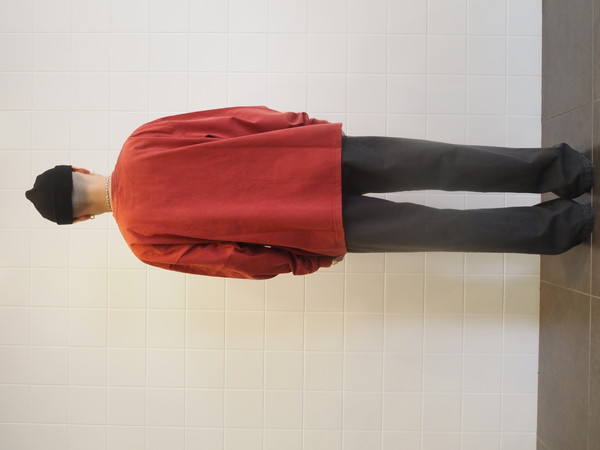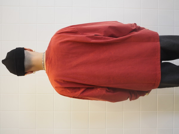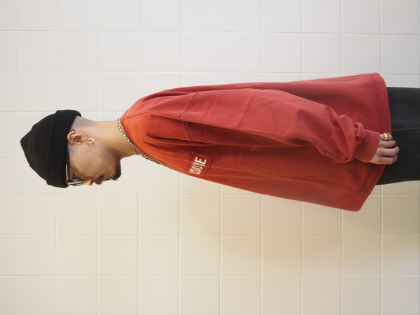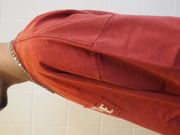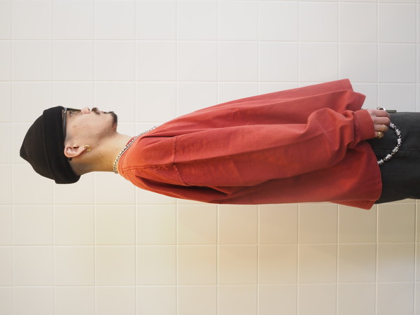 空紡糸で編み上げたドライなタッチが特徴の天竺を使用。 製品加工により着古したような雰囲気に仕上げた。 ワイドシルエット。