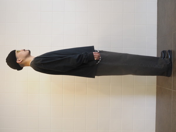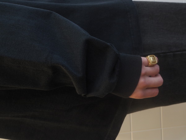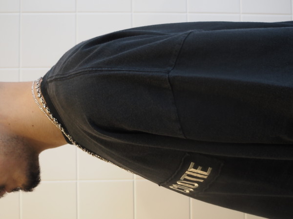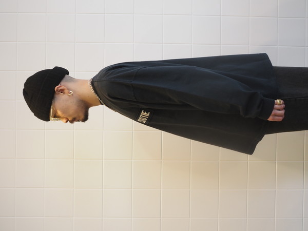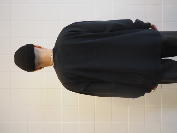 空紡糸で編み上げたドライなタッチが特徴の天竺を使用。 製品加工により着古したような雰囲気に仕上げた。 ワイドシルエット。