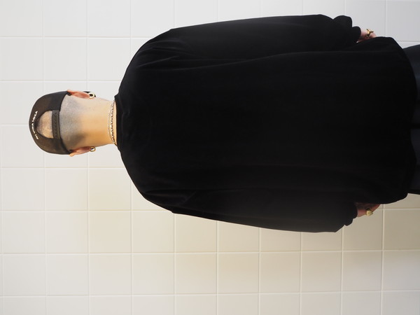 滑らかな質感と上品な光沢を持つオリジナルコットンベロアを使用。 ワイドシルエット。