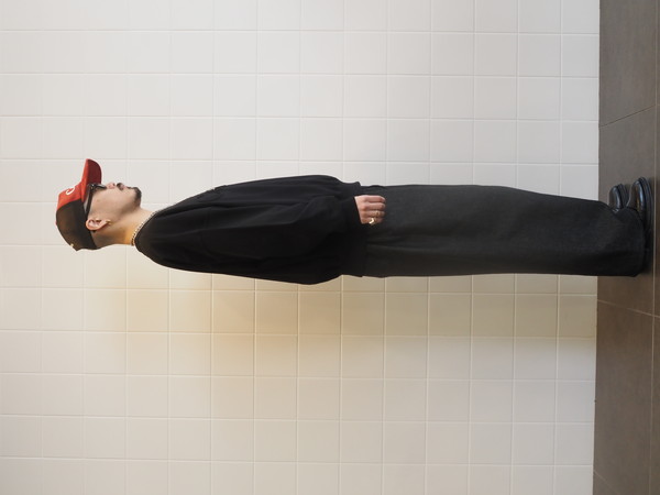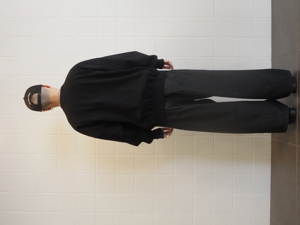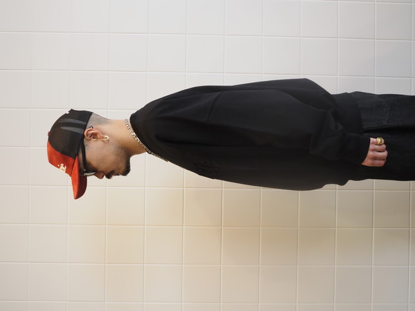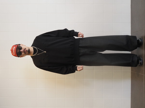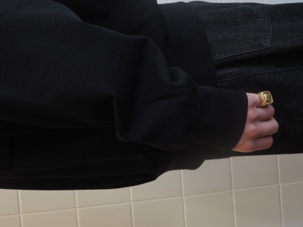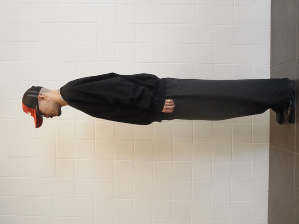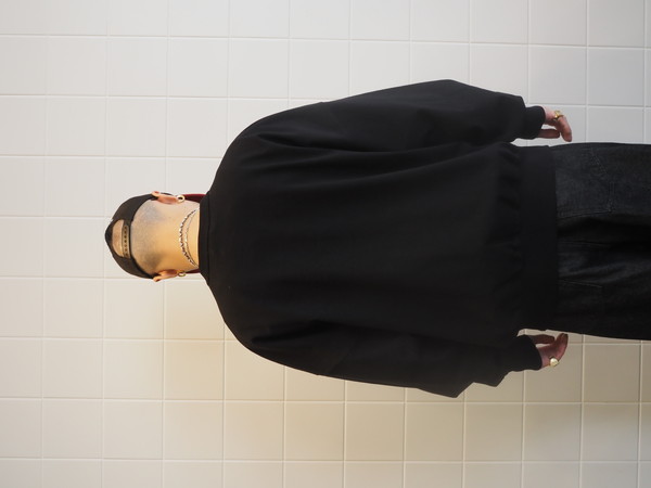 オリジナルで作成したMVSヘビーオンス天竺を使用。ドライタッチでナチュラルな風合いが特徴。ワイドシルエット。