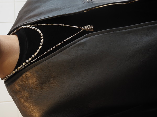 上質な北米ステアハイドを使用。 裏地には肌当たりのいいキュプラツイルを使用。 ワイドシルエット。