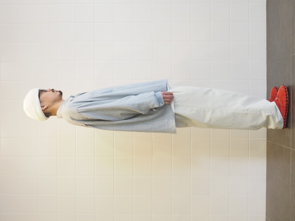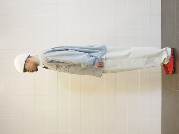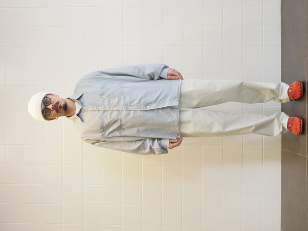 ワイドテーパードシルエット。 製品 Wash 加工。