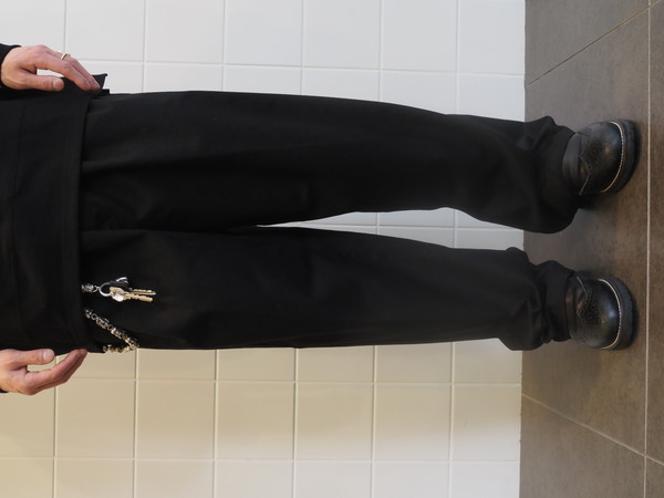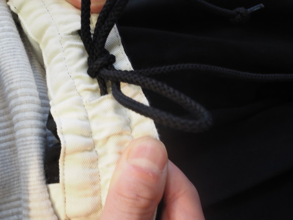 上品な光沢とハリ、コシを持つウエストポイントを使用。 ドローストリングのイージー仕様。