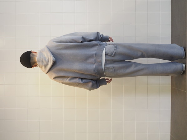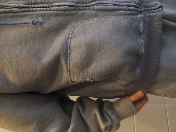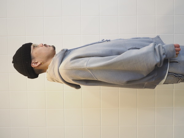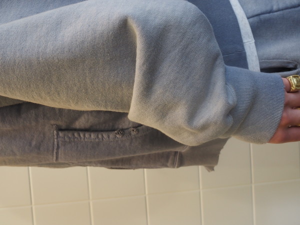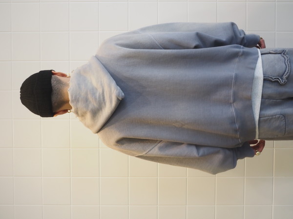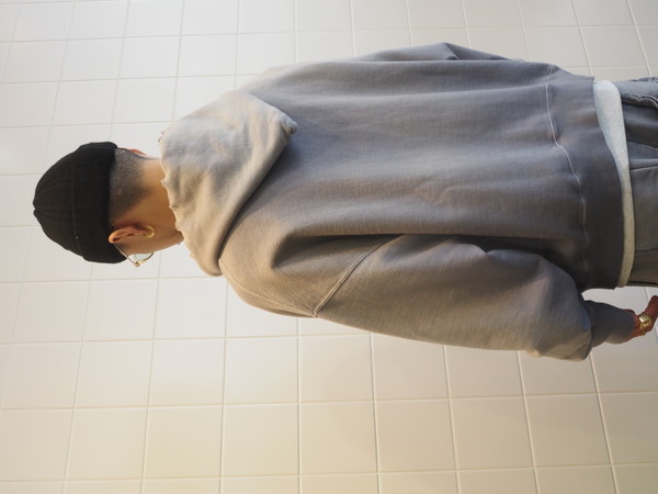 ビンテージらしいシルエットと縫製の表情を活かしている。 起毛無しの厚地裏毛を使用し、特別な編み機によるヴィンテージの質感を残した仕上がり。