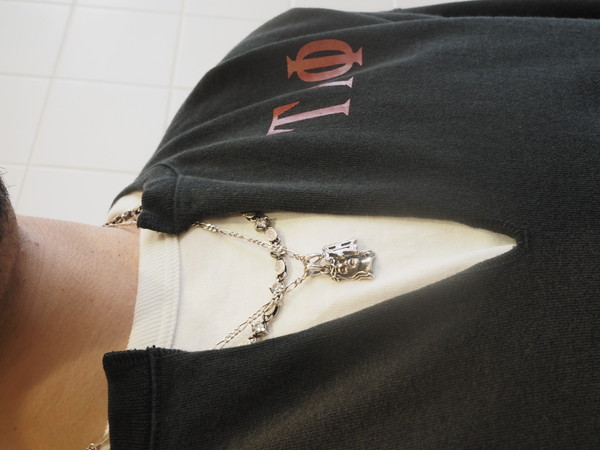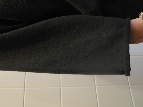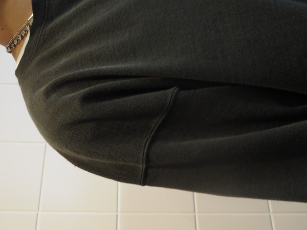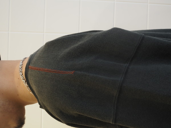 某有名スウェットのディテールを引用 。衿に切り込みを入れ、袖は9分丈にカット - オリジナルで制作したライトオンス裏毛素材