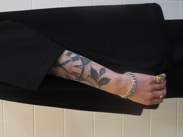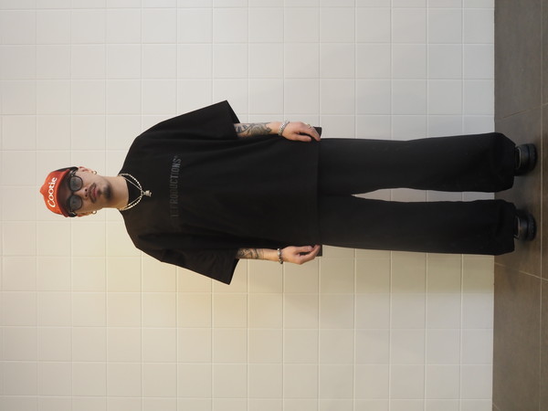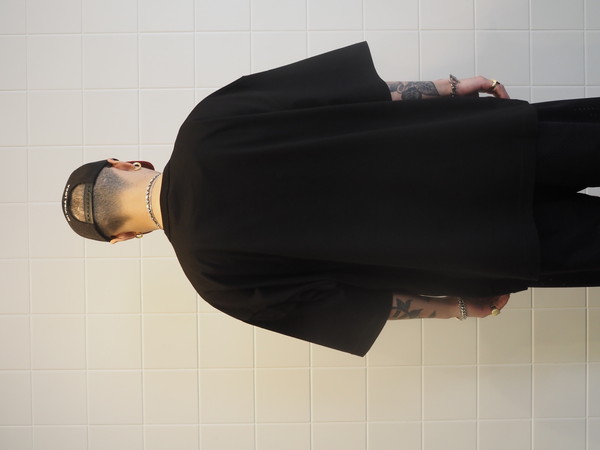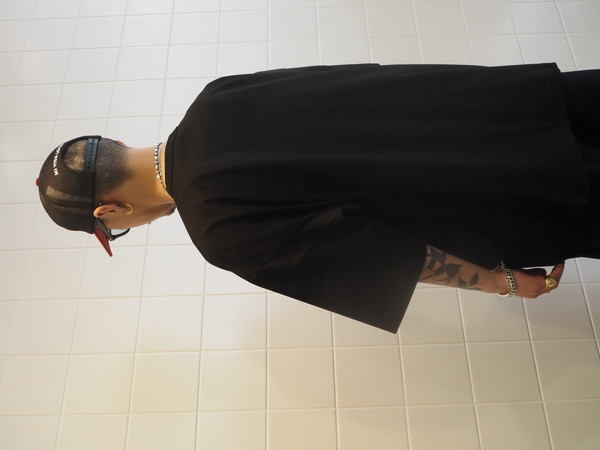 細番手のスーピマコットンと米綿を 50/50 でブレンドして編み上げた天竺を使用。 淡い光沢としなやかさが特徴。 ワイドシルエット。