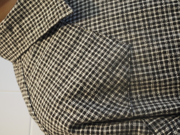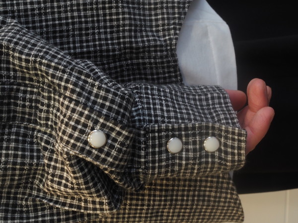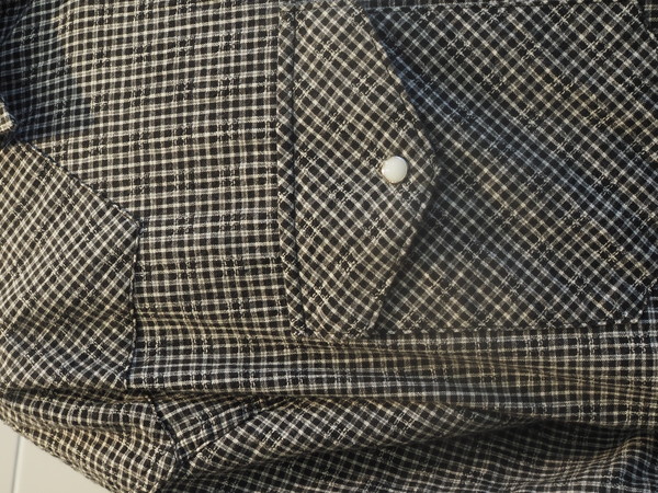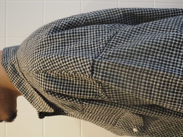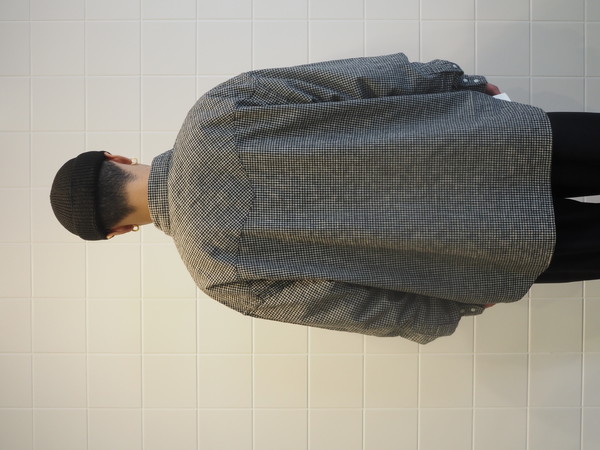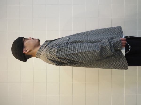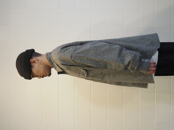ドビー織機で作成したオリジナルのパナマチェック生地を使用。 清涼感のある風合いを持つ。 ワイドシルエット。 製品Wash加工。