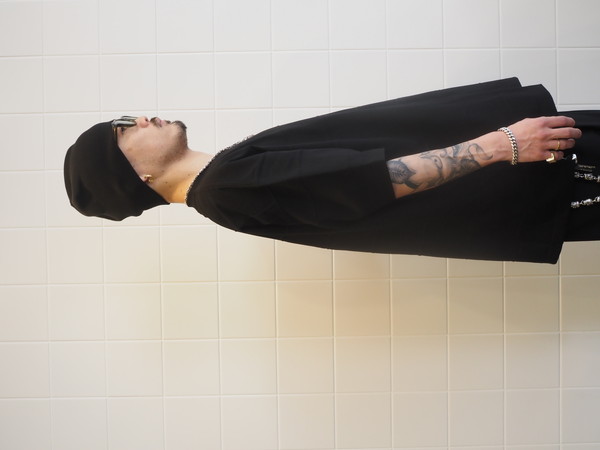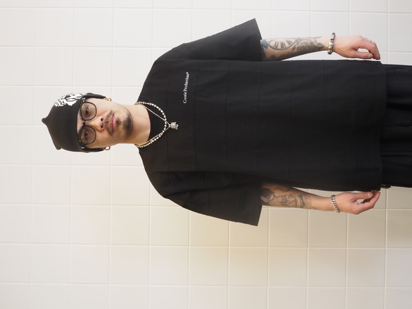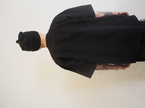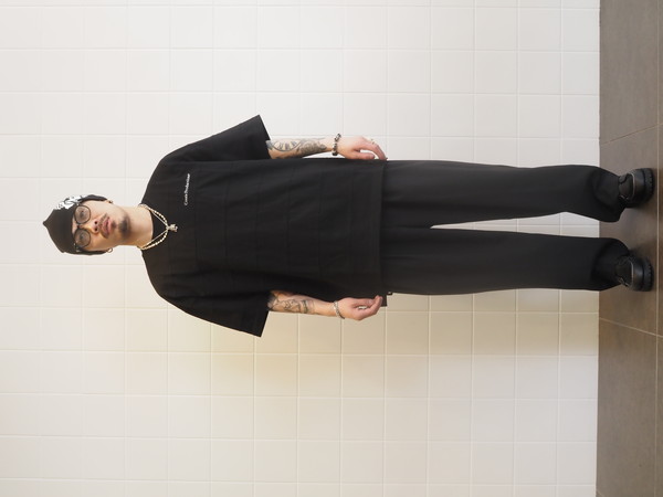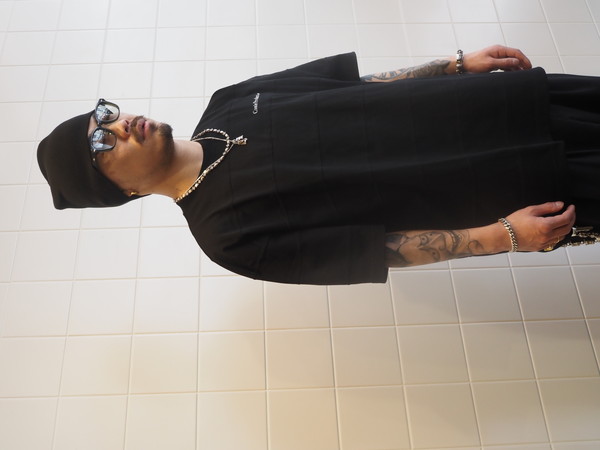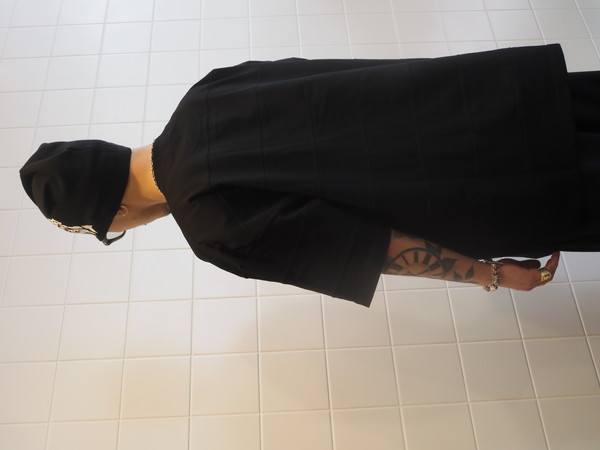 オリジナルで作成した上質な光沢感を持つプレーティング天竺を使用。 ワイドシルエット。