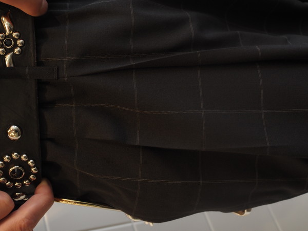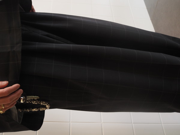 光沢とドレープが特徴のウールとポリエステル混紡のウォッシャブル平織生地を使用。
