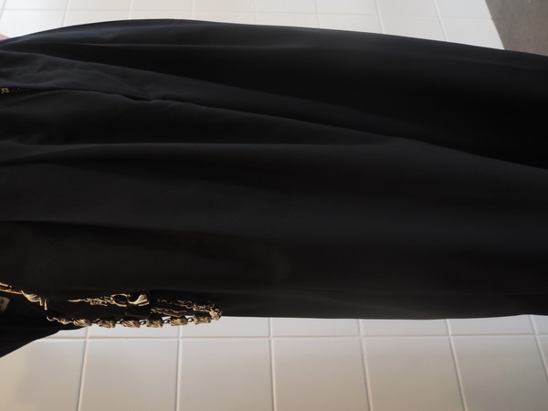 光沢とドレープが特徴のウールとポリエステル混紡のウォッシャブル平織生地を使用。
