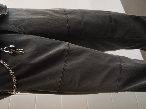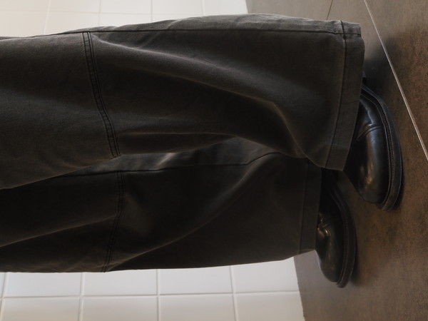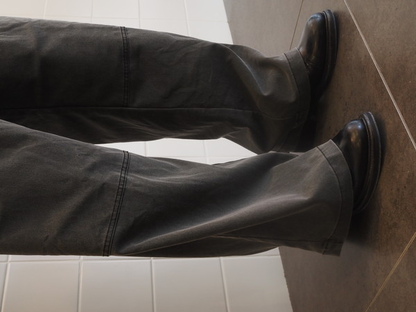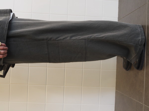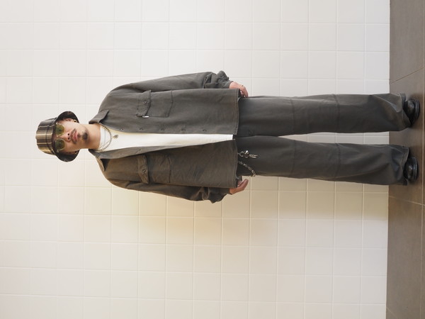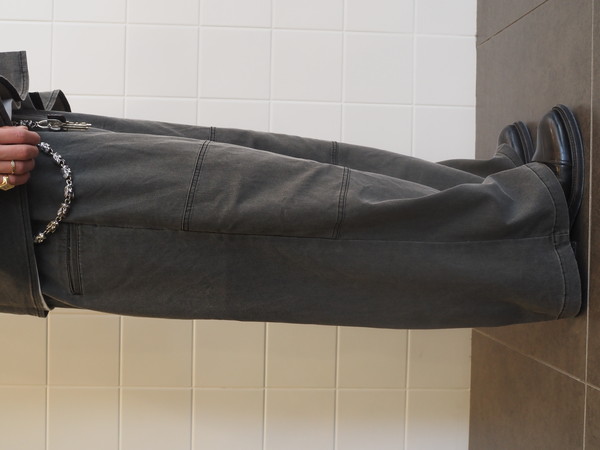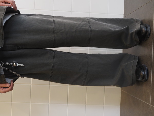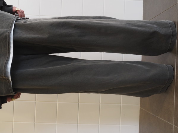 前開き有り。 ワイドストレートシルエット。 製品Wash加工。