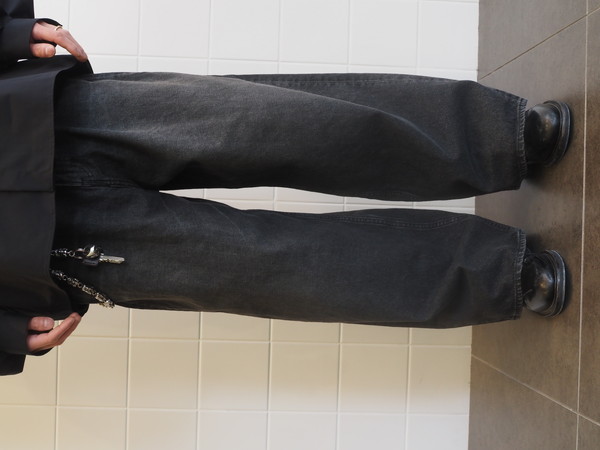 12.5oz のオリジナルで作成したデニムを使用。 エクストラバギーシルエット。 製品 Aging Fade 加工。