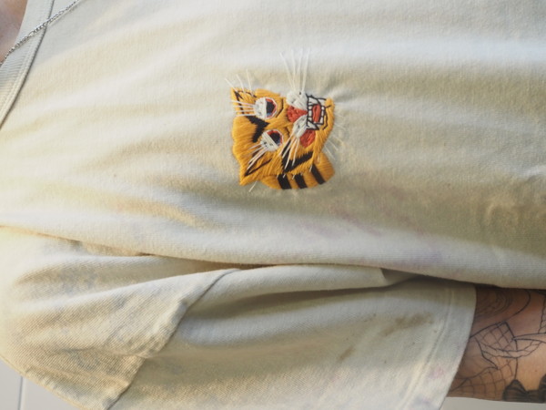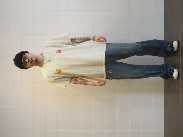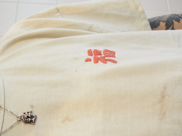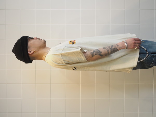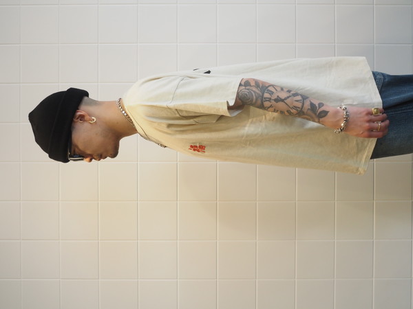 ボディには80年代のレーヨン混Tシャツの空気感を意識した丸胴仕様を採用し、刺繍の持つ荒さと、着心地の良さが共存するバランスに仕上げている。