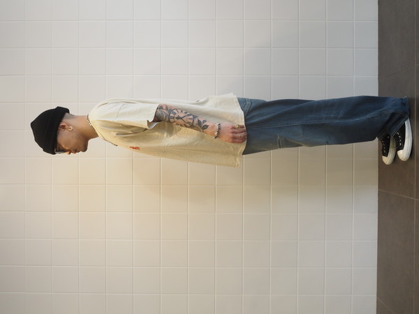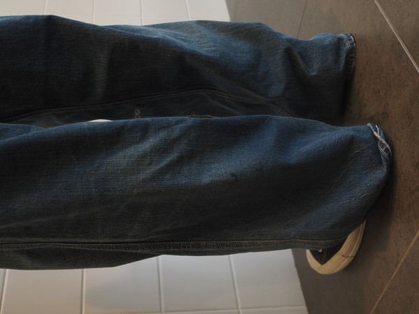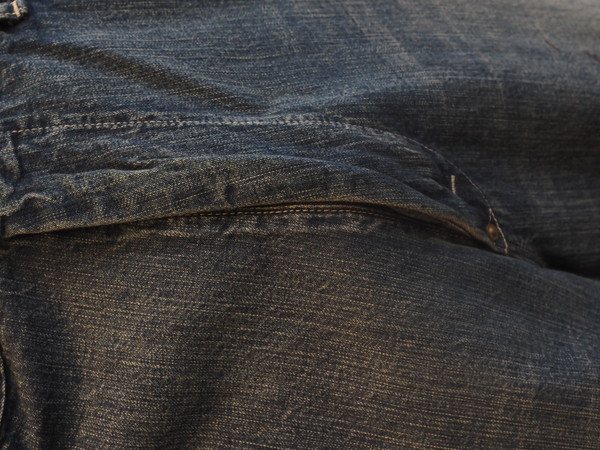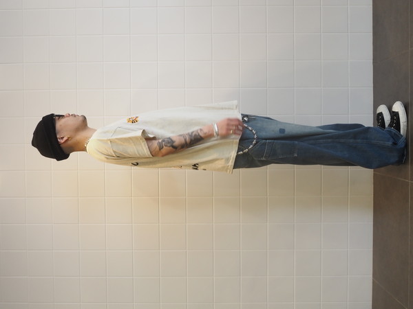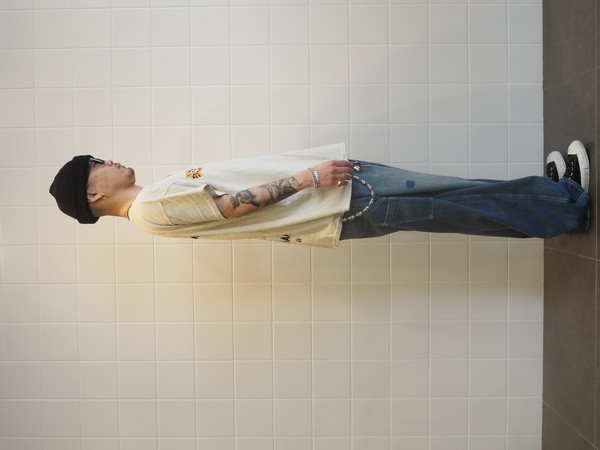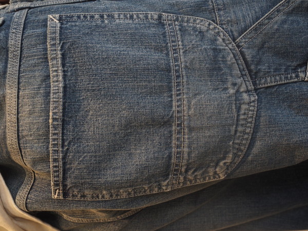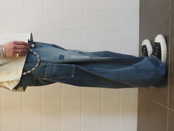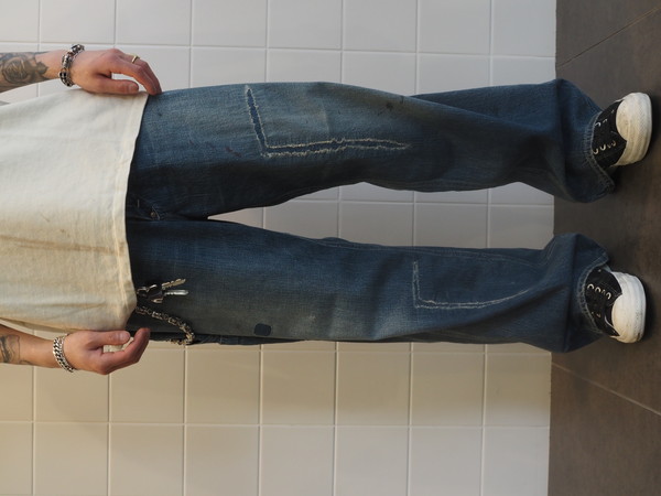 擦れ、退色、汚れが重なった加工表現に加え、破れやリペア痕まで踏み込んだ表情づくりで、長年使い込まれてきたリアルな佇まいを再現。