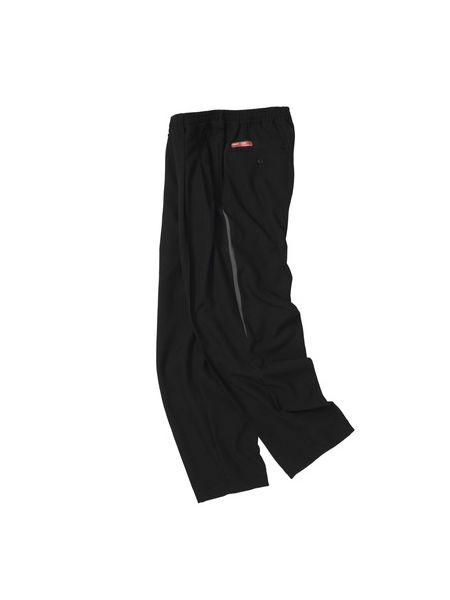 素材には、美しい微光沢を持つ日本製の高密度サージ生地を使用。 スラックスの品とジャージの快適さを兼ね備えた、ハイブリッドなテキスタイル。